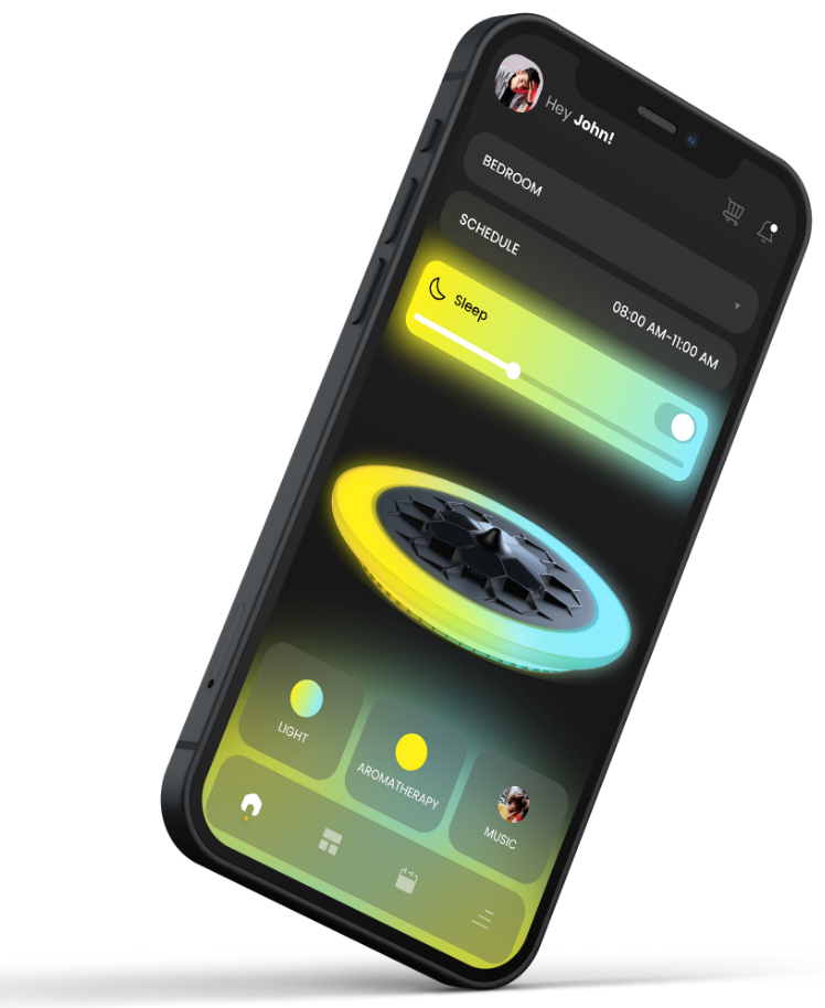 The light will start dimming, lavender aromatherapy will provide a calming effect,